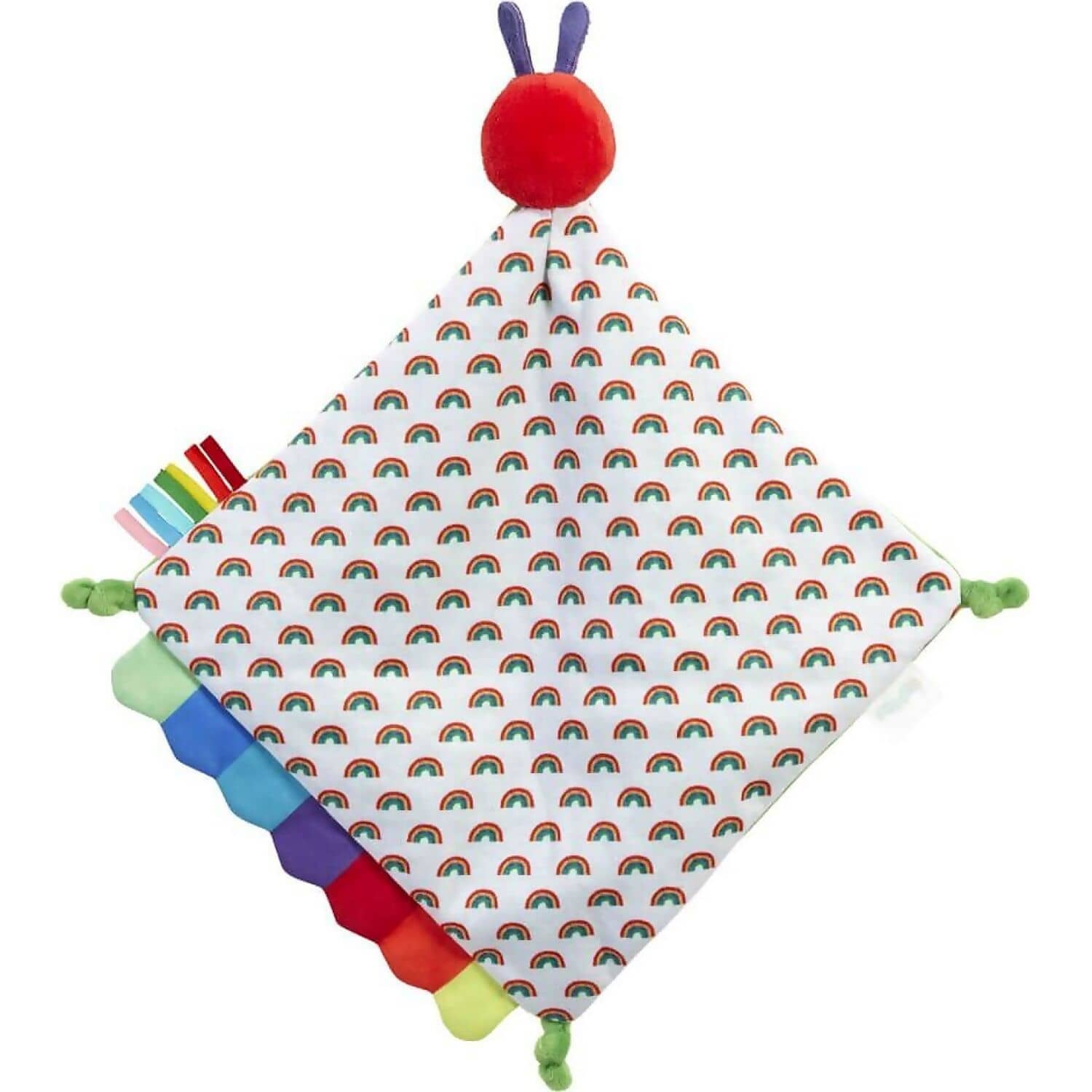 Comfort baby and encourage their development with the super cute and baby soft Caterpillar Comfort Blanket. Based on Eric Carle’s wonderful and hugely successful picture books, the Caterpillar Comfort Blanket is bright and colourful and features a rainbow pattern on the reverse, as well as an array of sensory play features.