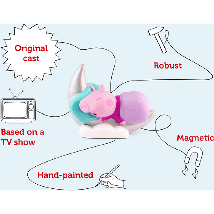 Designed for use with the Toniebox, this character offers a screen-free listening experience for children aged 3 and up. Simply place Peppa on top of the Toniebox to begin the storytelling—no buttons or setup required. Whether it’s snuggling up in pyjamas or settling down after playtime, Peppa’s stories help create a calm and comforting bedtime ritual.