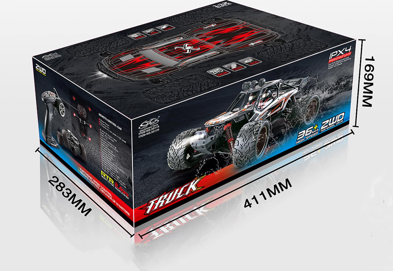 UPDATED 2S 7.4V BATTERY NEW TRANSMITTER UPDATED PLASTICS, SHOCKS & DRIVETRAIN Color: Blue Scaleš 1š12 Frequency: 2.4GHz Speed: 40km/h Control distance: 80M Charging time: 2h Using time: 20 min Battery of Car: 7.4V 1500MA Li-ion Weight of the car: 1095g Controller size: 16.5921CM Package weight: 2080g Controller battery: ‘AA’3 (Not including‰ Features: 1. The charger has charging voltage limiting protection. 2. The battery adopts over discharge protection and low voltage protection 3. The circuit board has overheat protection function. 4. The whole car has bearings, metal transmission shaft and transmission cup