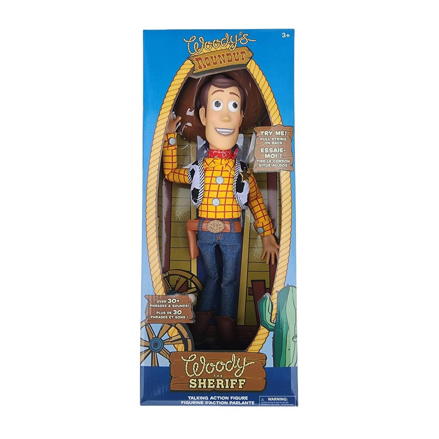 Straight from the wild west and Toy Story 4, comes Sheriff Woody as a talking action figure. The level-headed lawman features more than 30 phrases. Pull string to hear phrases including ”You’re got a friend in me ,” ”Howdy Partner! My name’s Woody,” and ”There’s a snake in my boot” Soft body construction, solid head and boots. Includes detachable cowboy hat.