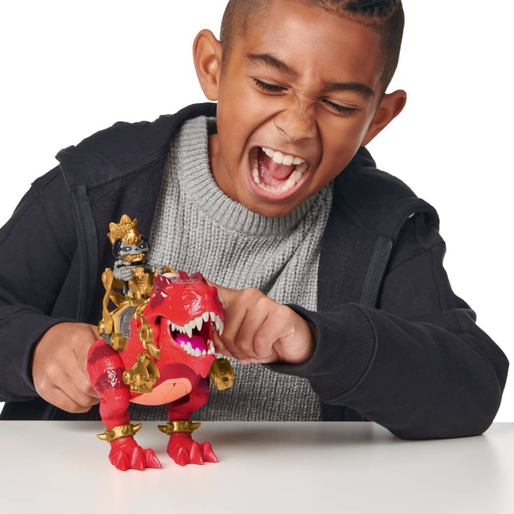 The Dino has done a prehistoric poop! Take your dagger and smash the crackle outer layer to discover your Treasure inside an amber vessel. Use the X-Key to open the vessel and reveal your Treasure!Did you find a Prehistoric pest or the REAL Gold Meteor There is a one in eight chance of finding REAL Gold dipped Treasure! Now roar into battle with your exclusive Hunter on his Battle Dino!