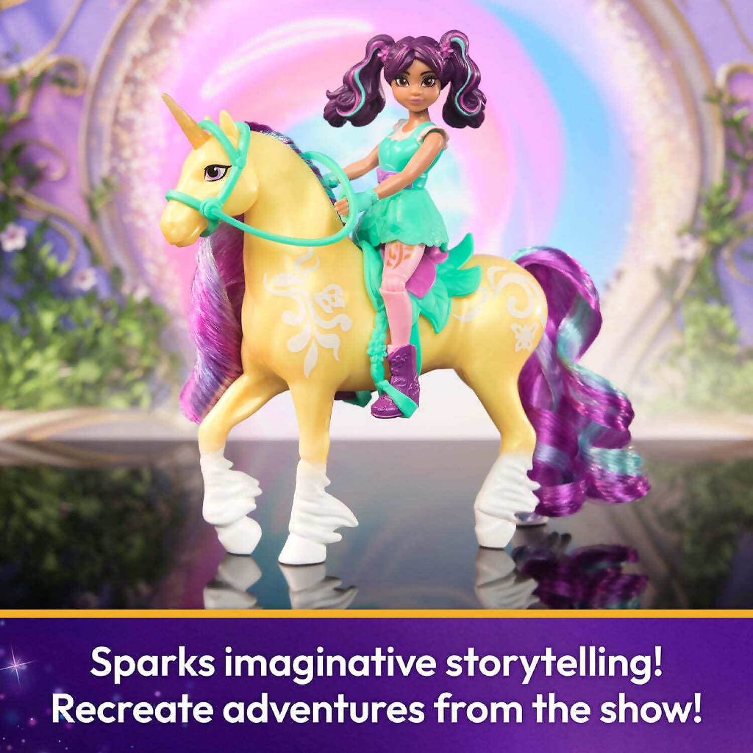 POSABLE DOLL & UNICORN SET: Based on the popular NETFLIX show and best-selling kids books, this Unicorn Academy duo of Ava & Leaf toys will spark endless pretend play adventures! AVA 4.5” DOLL: Live out the magical bond between rider and unicorn with Ava & Leaf! Authentic character details and 7 points of articulation bring Ava to life. Ava can be posed on Leaf to ride into adventure!