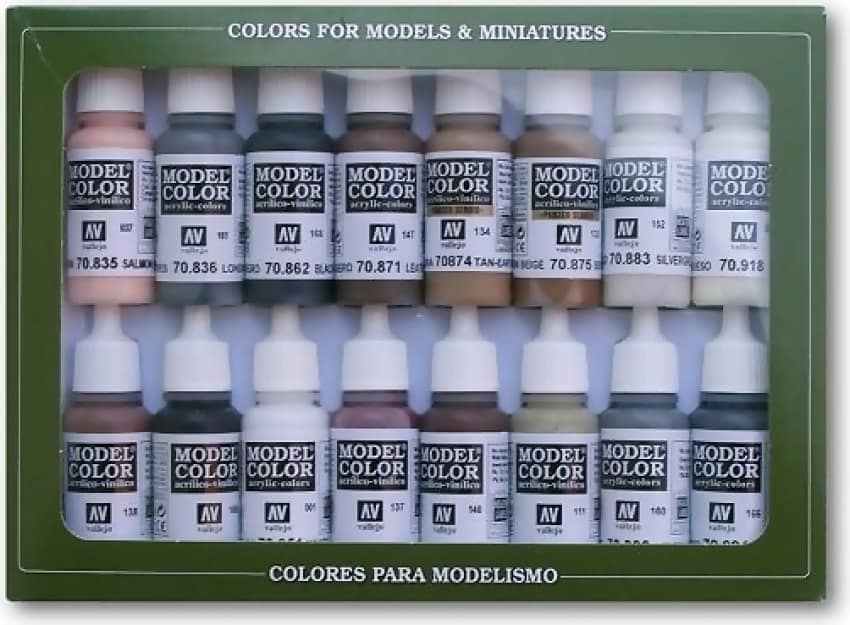 Matt and opaque acrylic colors with highest pigment concentration in a water-based formula, especially developed for brush-on application. The Model Color range is very extensive and includes basic shades as well as many references developed by our experts for use on historical figures as well as the specific colors employed for all types of vehicles, planes and military models. The assortment includes a selection of glazes, transparent and fluorescent colors used for achieving special effects. It is recommended to apply the colors on a surface which has first been primed; the colors dry rapidly and form a self-leveling, homogenous paint film, equally perfect for large surfaces as for the most miniature details of the model. Model Color performs exceptionally well on all surfaces, with extraordinary adherence on resin, plastics, steel and white metal. Tools and brushes are cleaned with water.Model Color is not flammable, and does not contain solvents.
