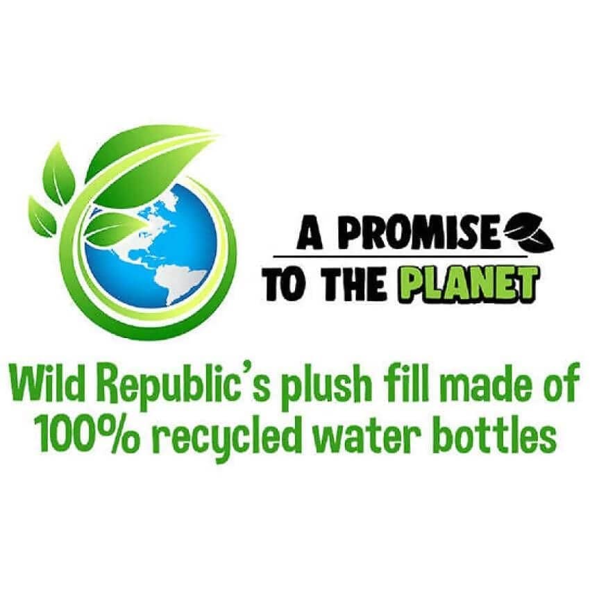 A promise to the planet : Wild republic’s plush fill made of 100% recycled water bottles.