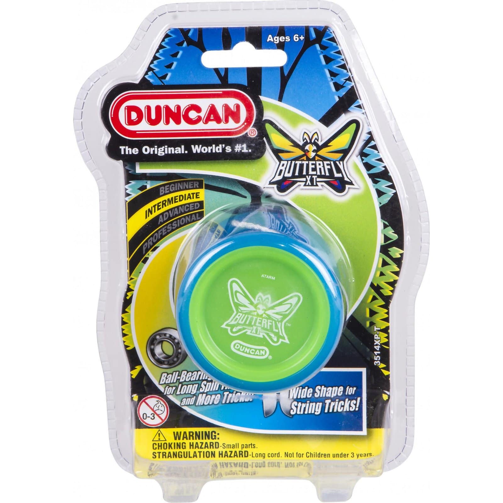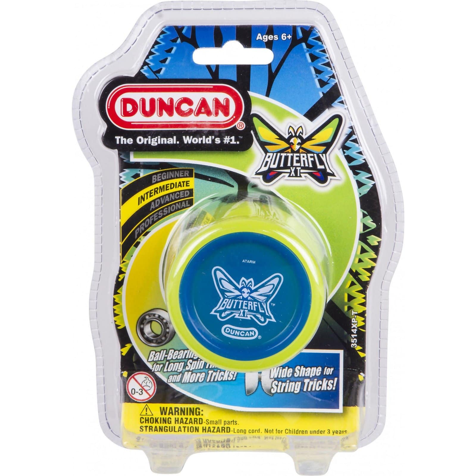 The Yoyo Duncan Butterfly XT Intermediate ( Assorted Chosen at Random ) is an intermediate level yo-yo by the toy brand Duncan. It is based on the world-famous Butterfly, the Butterfly XT is a classic design with modern technology. It features a ball-bearing axle, offering 10x the spin time of the original Butterfly.