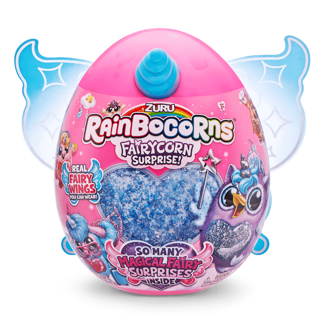 Rainbocorns Fairycorn Surprise is full of magical surprises! Unbox amazing magical fairy surprises incoluding colour change poop, a fairy glitter heart and an adorable new Fairy Boo-Boocorns to hatch and collect!