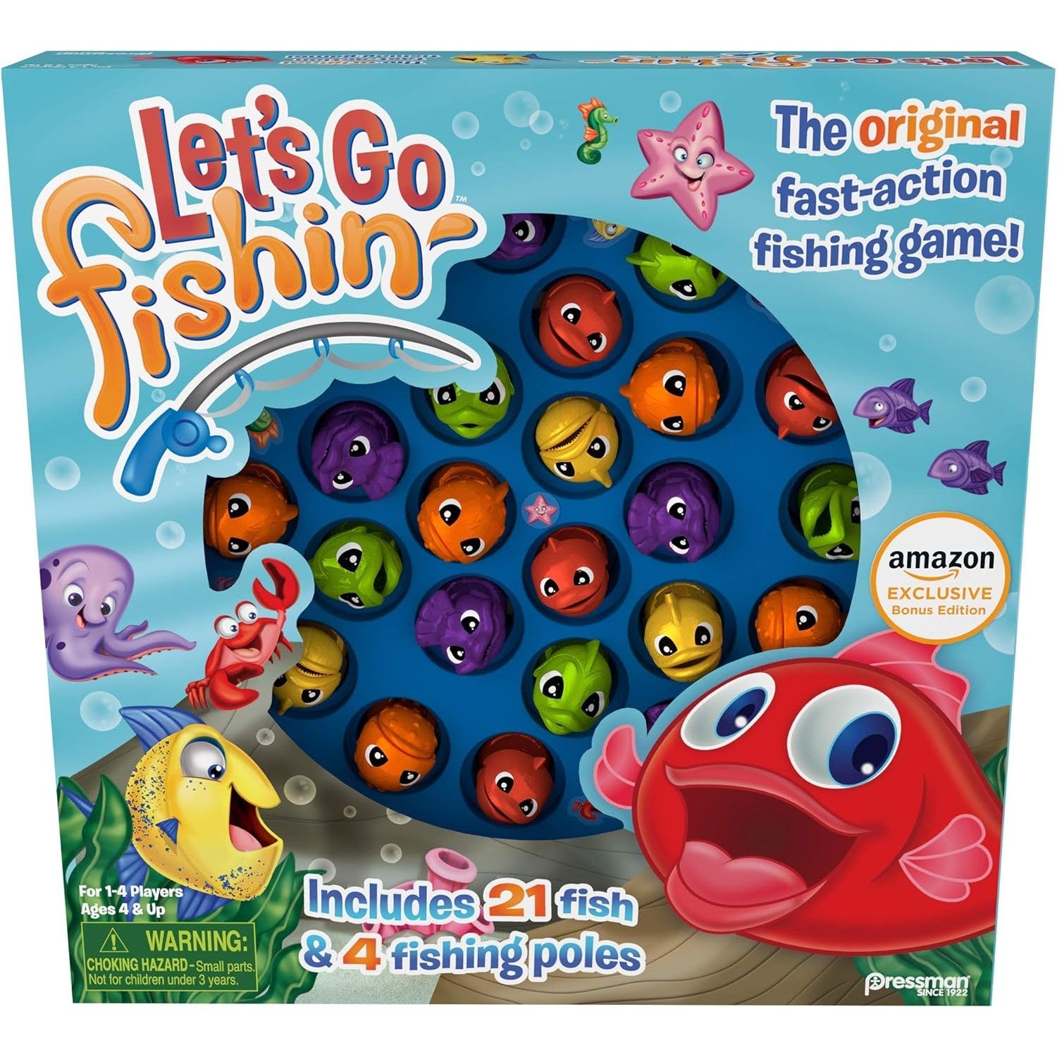 Get ready for some reel fun with this Amazon exclusive let's go fishing' Set, which includes a bonus lucky ducks make-a-match card game along with the original version of the well-known and well-loved fishing game that parents will remember playing When they were kids.