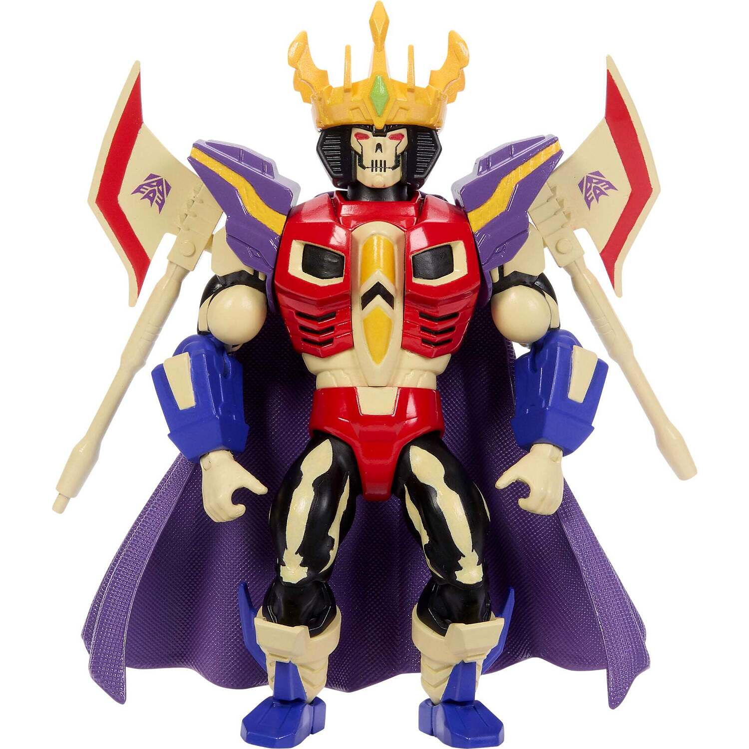 Includes: 1 Masters of the Universe X Transformers Starscream Armor Scare Glow action figure, 2 wing blasters, 1 crown and 1 mini-comic. Colors and decorations may vary.