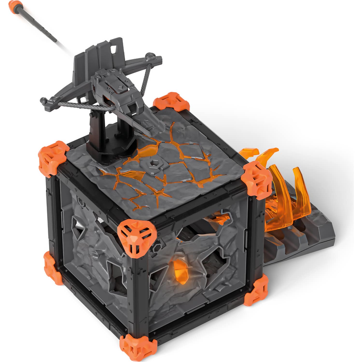 Contents: 1x Lava Bear, 1x BattleCave base frame, 1x lava crystal, 3x wall, 1x ceiling, 1x grasping arm trap, 1x rotating crossbow with shooting function, 1x arrow